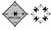 bruggelijkrichter weergegeven met een maximale spanning van 40 volt en