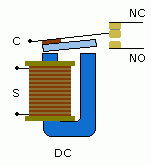 Bij een gelijkspanningrelais (zie tekening 5) veroorzaakt de stroom in