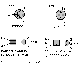 Er bestaan twee hoofdsoorten transistoren: NPN en PNP. Een transistor