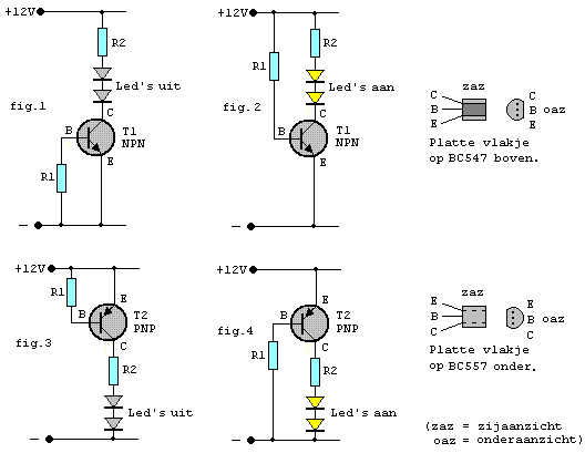 dan geleidt de transistor en branden de LED's (fig.2.)
